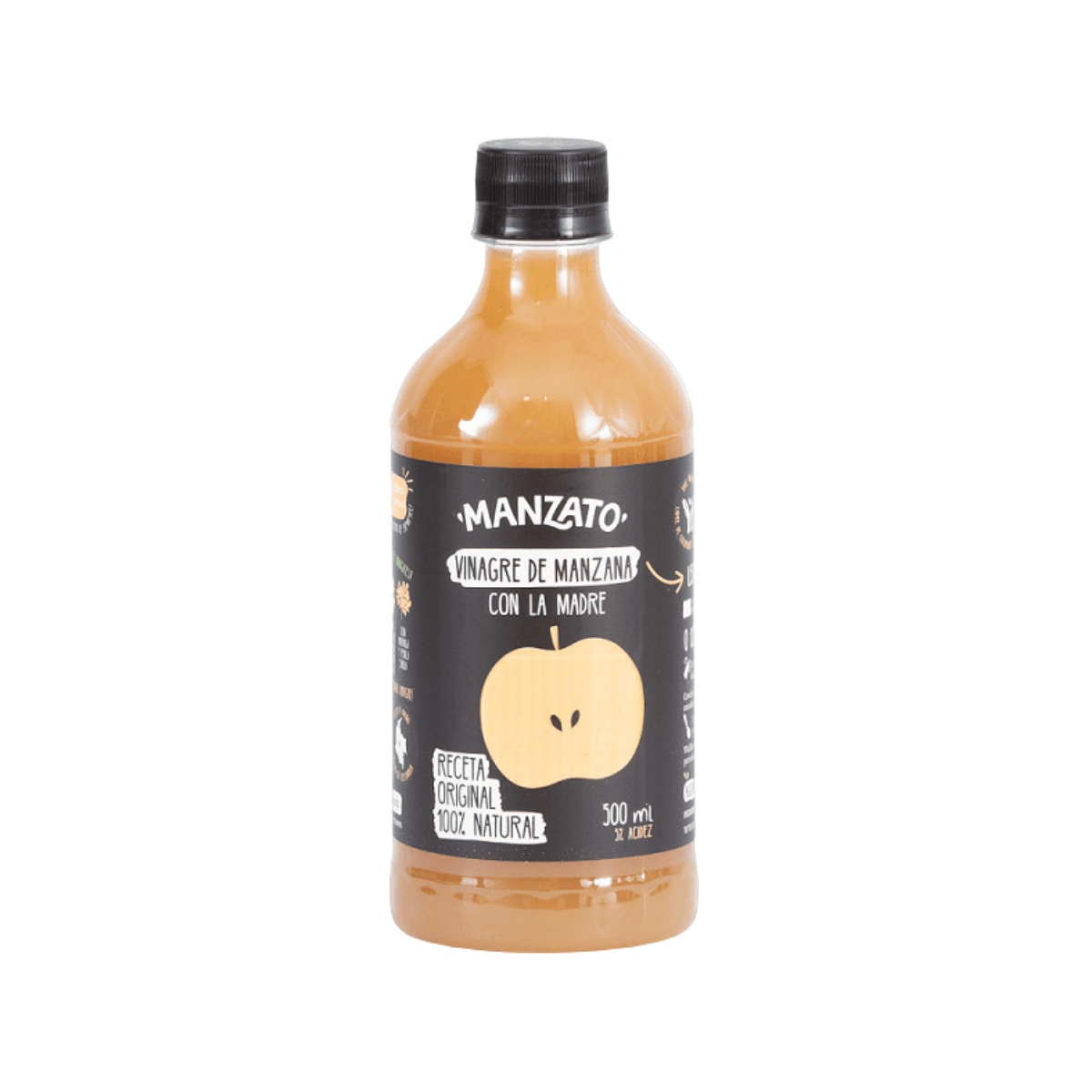 Manzato Vinagre de Cidra de Manzana 500ml contiene pulpa de manzana. Este vinagre es 100% natural, es que decir que no está filtrado ni pasteurizado, tampoco contiene conservantes.
