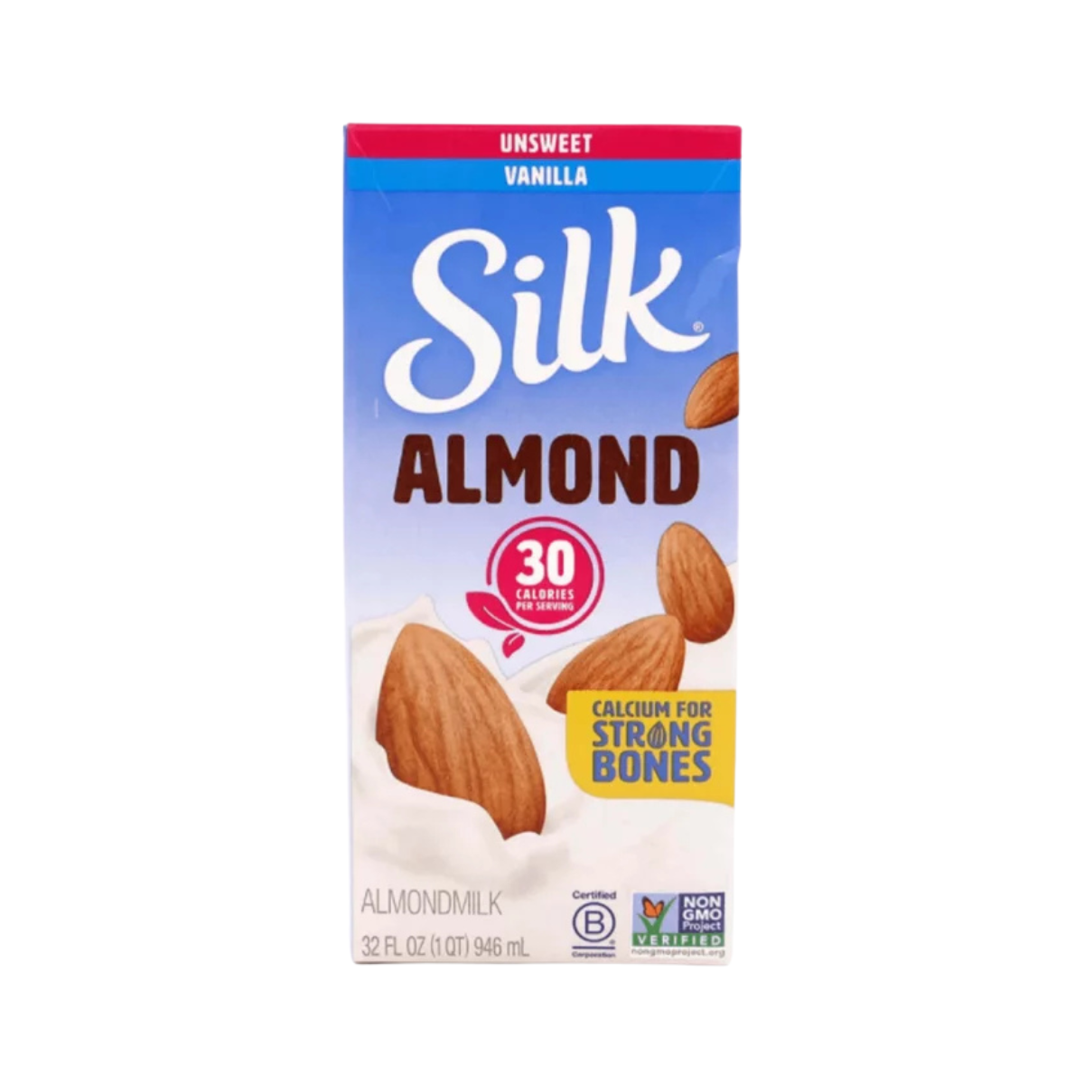 Silk Almond Milk Vainilla sin Azúcar 946ml es una bebida vegetal a base de almendras sin azúcar y con sabor natural a vainilla. Contiene almendras, agua filtrada, sabor natural, regulador de acidez, sal marina, entre otros ingredientes. Esta bebida está enriquecida con calcio, vitamina D, vitamina E y vitamina A, Incluir esta bebida en la alimentación es muy fácil. Puedes tomarla directamente o acompañar cereales, preparar jugos, batidos, postres y más recetas. Es perfecta para cualquier miembro de la familia, además, como viene enriquecida con vitaminas y calcio, es una bebida más funcional y saludable.